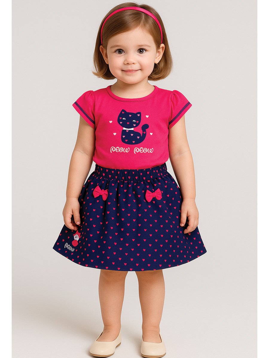 Cute Little Girls Tops and Skirt set. Top is made of hosiery cotton fabric and Skirt is made of denim fabric. Eco-friendly Comfortable for the baby skin. Cute Meow Meow Kitty printed on top that your cute little baby will love it.