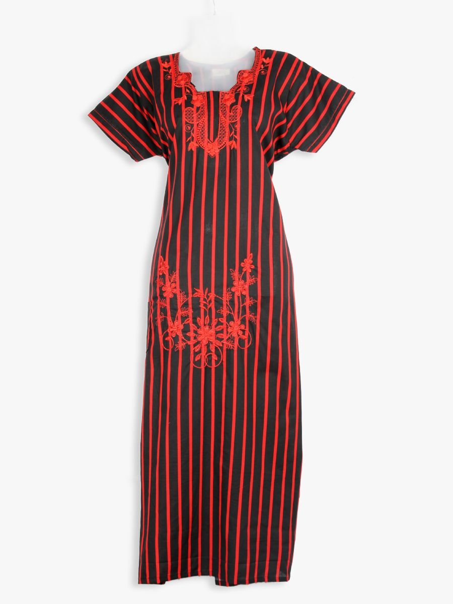 - Red cotton nighty, floral embroidered nighty, cotton nightwear with zipper, sweetheart neck night dress, half sleeve cotton sleepwear, nighty with side pocket, breathable cotton nighty for women