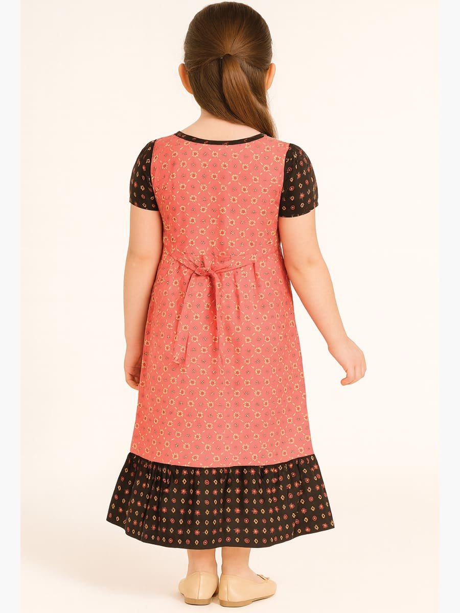 This women’s cotton frock-style nighty in Coral & Coffee offers the perfect blend of comfort and elegant design. Made from soft, breathable cotton, it features a printed top, contrast printed skirt, stylish criss-cross neckline, puff sleeves, and a flared hem for a charming frock look. Ideal for nighttime comfort, home wear, and relaxed lounge days.