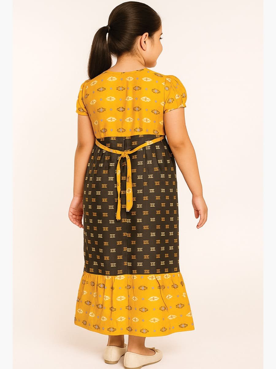 Bring charm and comfort to your everyday style with this Women’s Cotton Printed Frock in a lovely Coffee and Yellow color combination. Crafted from 100% soft cotton, this frock offers breathable comfort ideal for daily wear, festive gatherings, or casual outings. The ethnic floral print, short puff sleeves, and flared hemline give it a graceful and traditional touch. Pair it with flats or sandals for a relaxed yet stylish look.