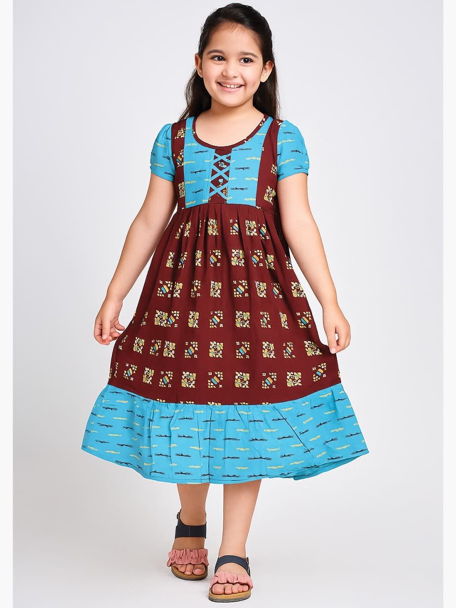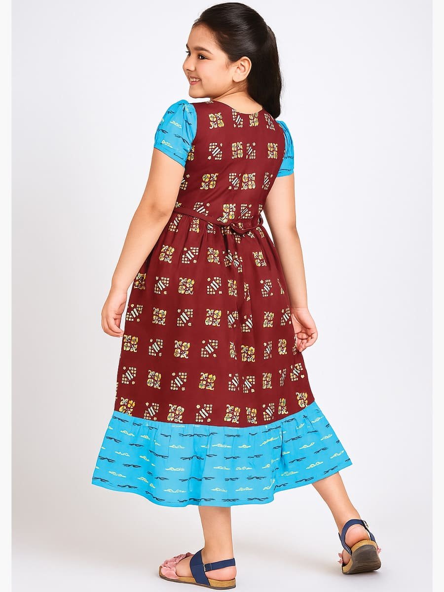 Bring charm and comfort to your everyday style with this Women’s Cotton Printed Frock in a lovely Maroon and Navy Blue color combination. Crafted from 100% soft cotton, this frock offers breathable comfort ideal for daily wear, festive gatherings, or casual outings. The ethnic floral print, short puff sleeves, and flared hemline give it a graceful and traditional touch. Pair it with flats or sandals for a relaxed yet stylish look.