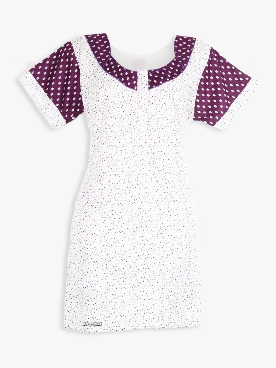women cotton night suit, cotton pajama set for women, dotted print nightwear, Purple cotton nightwear, women’s night dress set, sleepwear set for women, cotton night dress combo, breathable cotton night suit, comfy cotton pajama