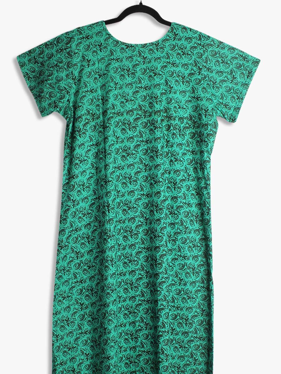 Experience unmatched comfort with this Traditional Green Cotton Nighty, designed for effortless relaxation. Crafted from 100% breathable cotton, this nightdress offers a soft, lightweight feel perfect for everyday wear. The square neck design adds a touch of simplicity, while the flowy silhouette ensures unrestricted movement. Ideal for women seeking traditional, comfortable, and stylish nightwear, this nighty is a must-have for your sleepwear collection.