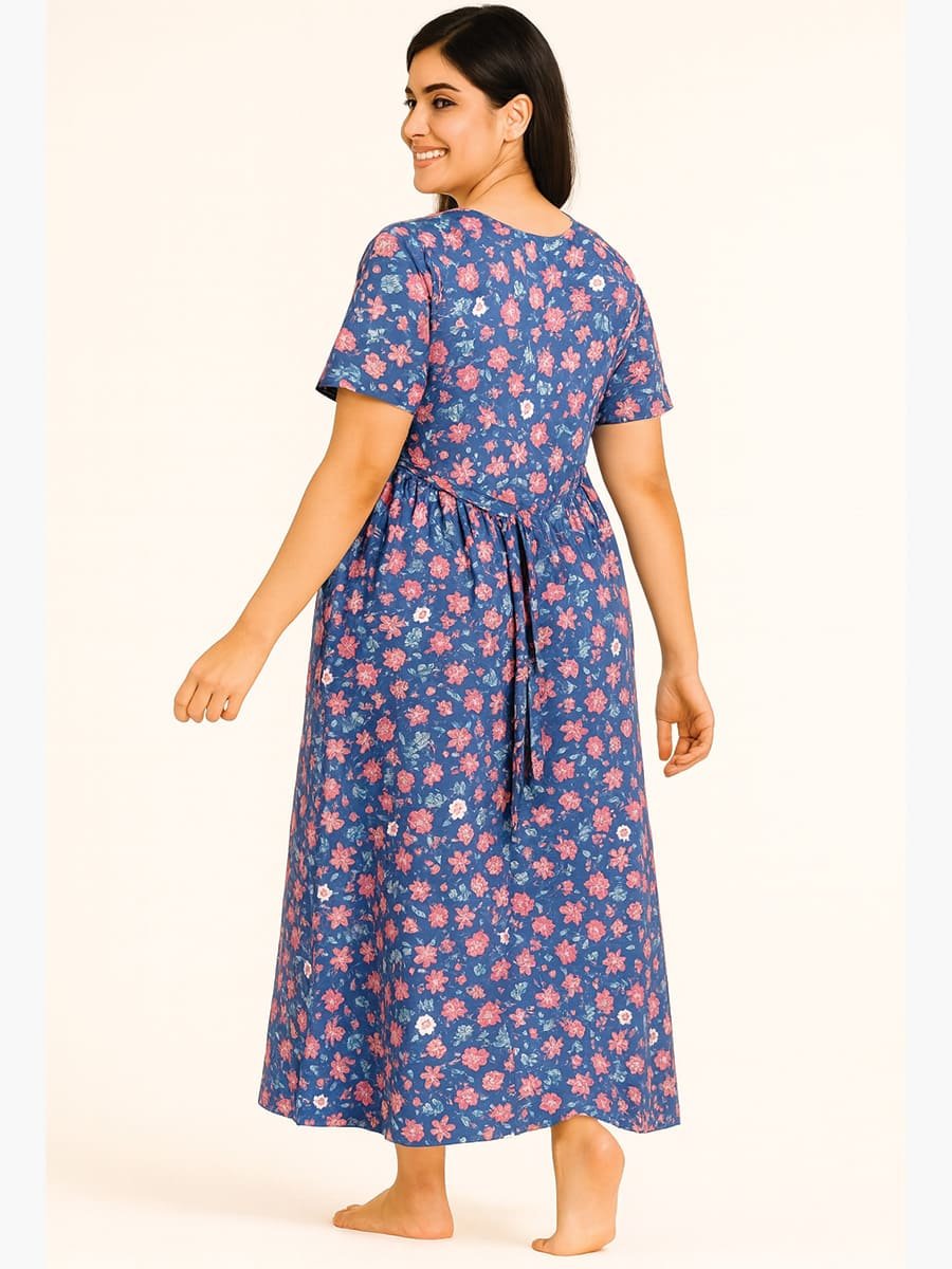 Stay comfortable day and night with this Women’s Cotton Feeding Nighty crafted in a soft Navy Blue floral print. Designed with a two-layer feeding flap, it ensures easy and discreet nursing for new moms. Made from premium 100% breathable cotton, this nighty keeps you cool, relaxed, and comfortable during pregnancy and postpartum. Its gentle drape, lightweight feel, and roomy fit make it ideal for everyday wear.