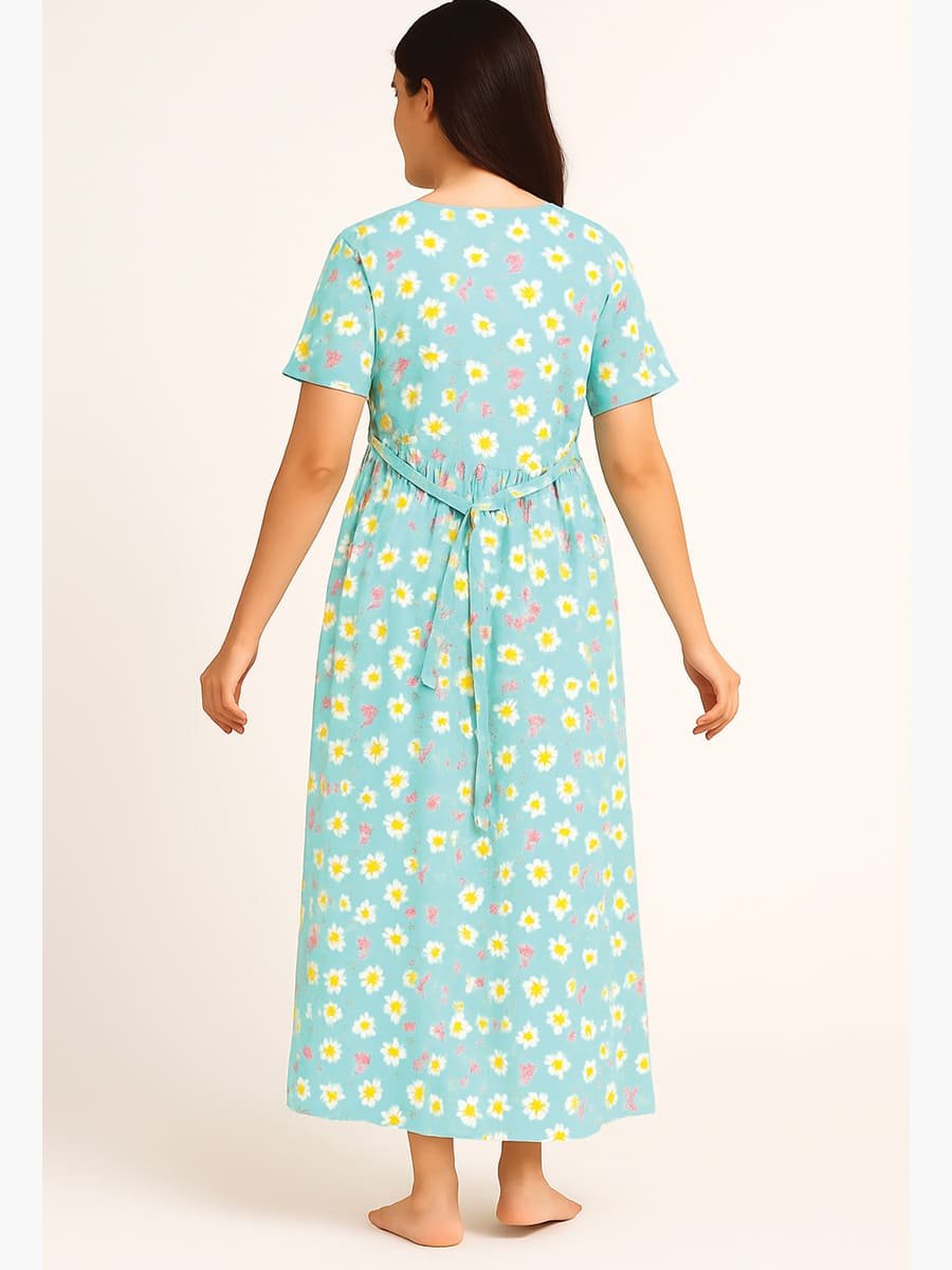 Stay comfortable day and night with this Women’s Cotton Feeding Nighty crafted in a soft Turquoise floral print. Designed with a two-layer feeding flap, it ensures easy and discreet nursing for new moms. Made from premium 100% breathable cotton, this nighty keeps you cool, relaxed, and comfortable during pregnancy and postpartum. Its gentle drape, lightweight feel, and roomy fit make it ideal for everyday wear.
