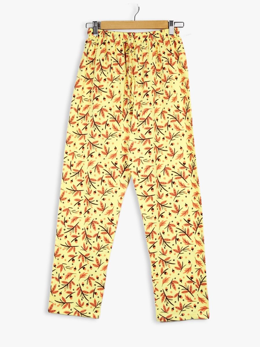 Bottom: Yellow pajama with cute all-over print and elastic waist