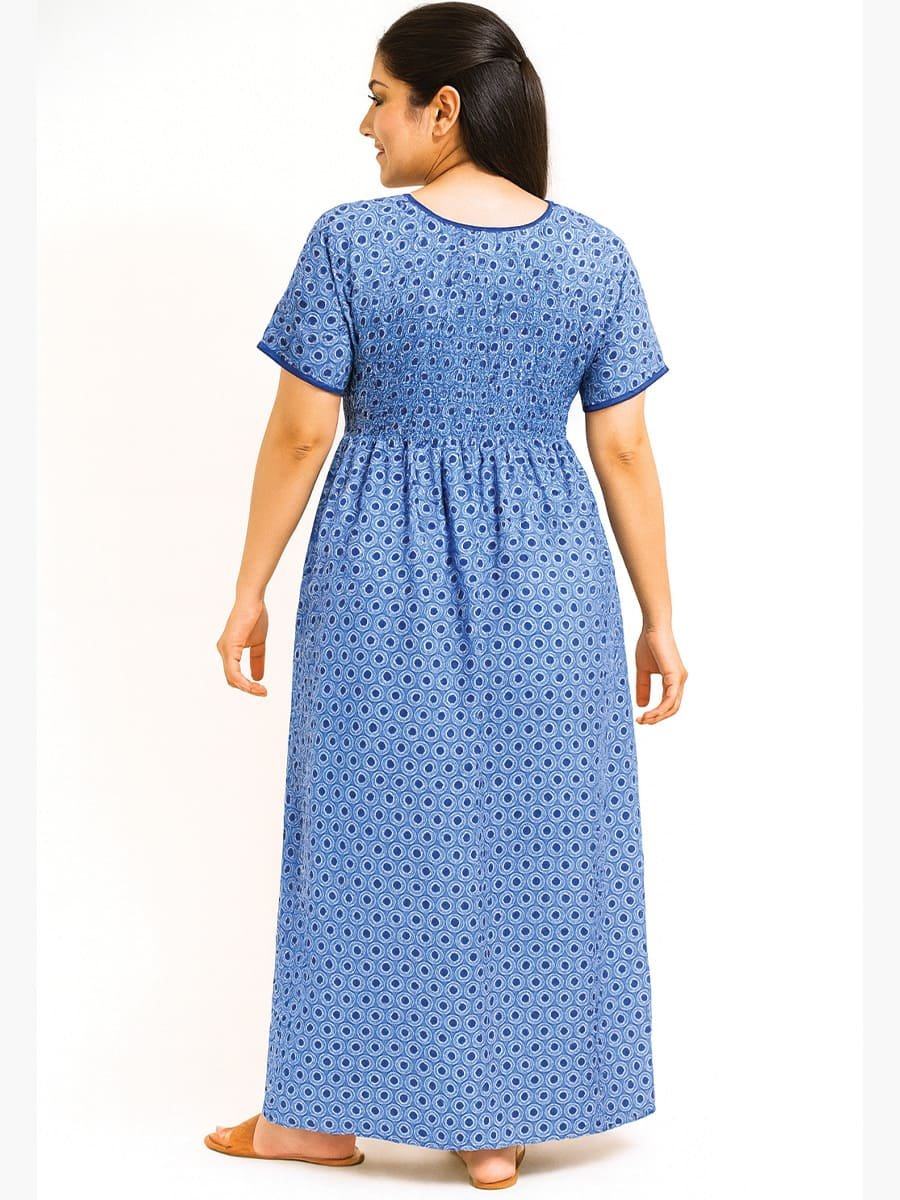 Stay comfortable all night in this Women’s Cotton Printed Nighty in elegant Royal Blue. Made from breathable cotton fabric, this nighty is soft, lightweight, and ideal for daily wear and peaceful sleep. Featuring a stylish all-over print, short sleeves, and a contrast neckline with bow detail, it combines comfort with a touch of charm. Perfect as cotton sleepwear, loungewear, or casual home wear for women.