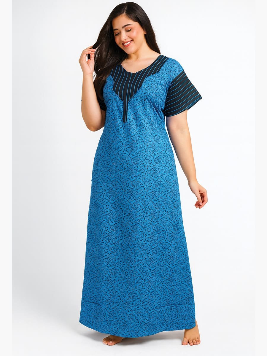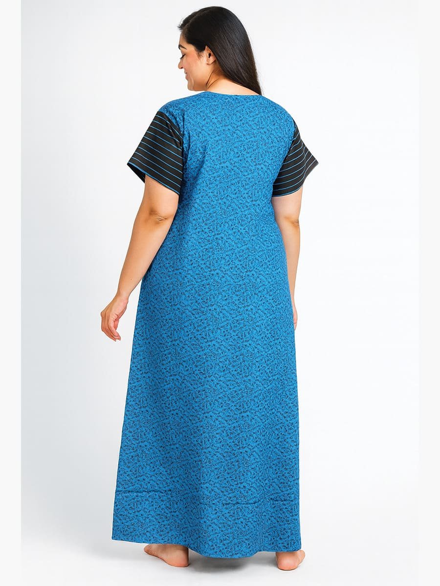 Experience everyday comfort with this women’s cotton floral zipper nighty, crafted for relaxed wear and ease of movement. Made from soft, breathable cotton fabric, this full-length nighty features a beautiful Blue base with Blue floral detailing that adds a feminine and elegant touch. The front zipper ensures easy wear, while the functional side pocket offers added convenience. Ideal for nightwear, loungewear, and daily home use, this floral cotton nighty combines style, comfort, and practicality for all-day comfort.