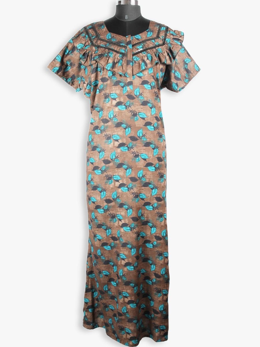 women cotton nighty, zipper nighty for women, cotton night dress with zipper, single frill nighty, frill cotton nighty, breathable cotton nighty, front open nighty, daily wear cotton nighty, Indian cotton nighty, soft cotton night dress