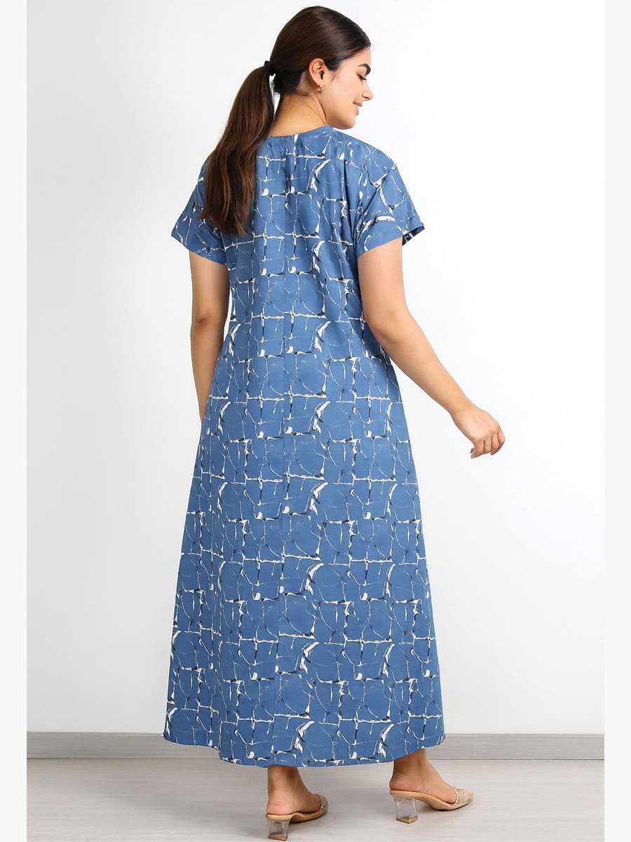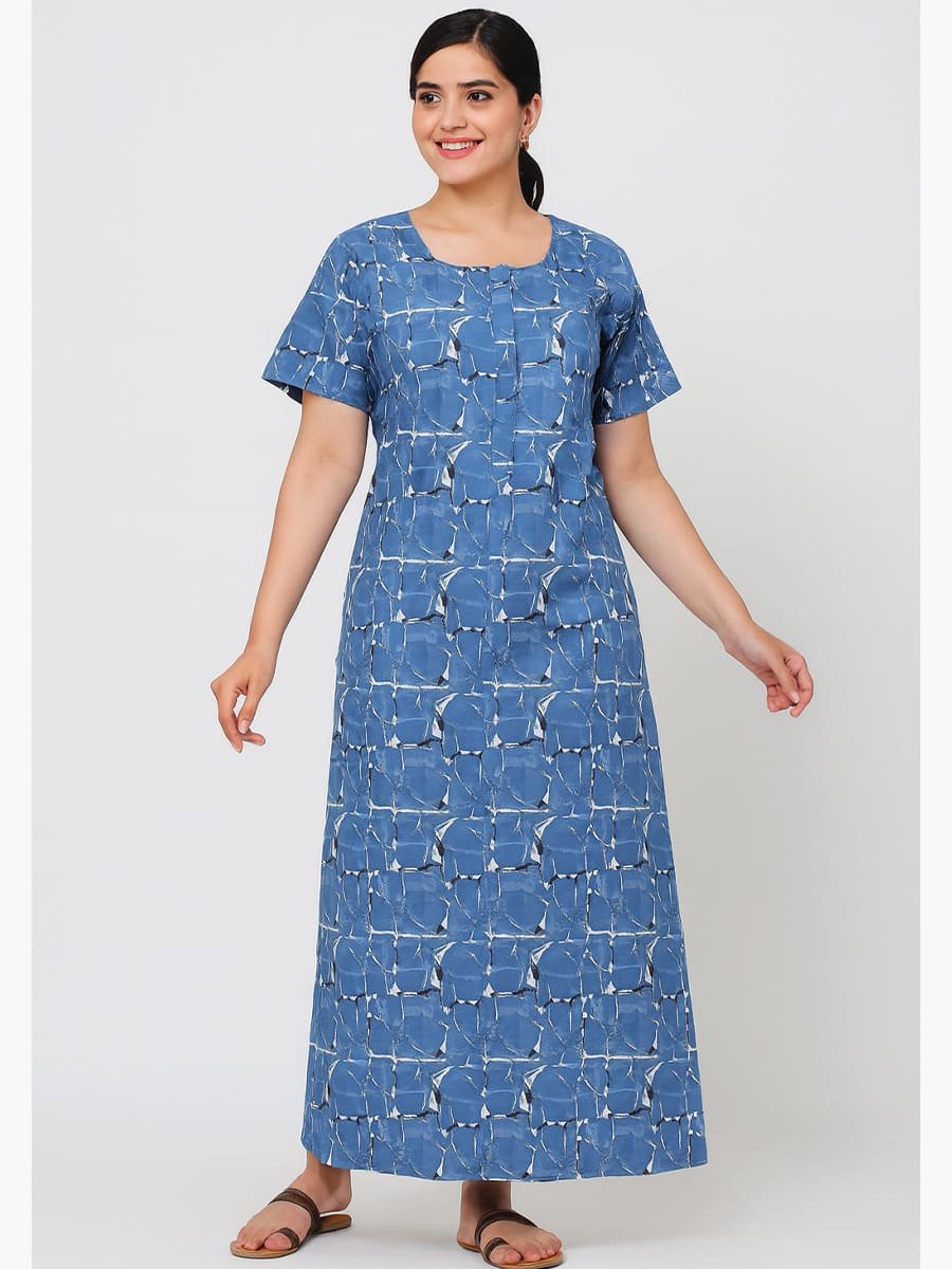 Experience unmatched comfort with this women’s cotton zipper nighty in a stylish Slate Gray printed design. Made from soft breathable cotton, it features a front zipper for easy wear, short sleeves, and a relaxed fit that ensures all-night comfort. Ideal for daily wear, maternity use, and sleepwear, this cotton nighty combines style, convenience, and durability. Perfect for women seeking both