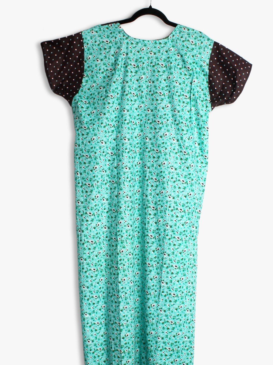 Upgrade your nightwear collection with this brown and teal cotton zipper nighty, perfect for lounging and sleeping in ultimate comfort!