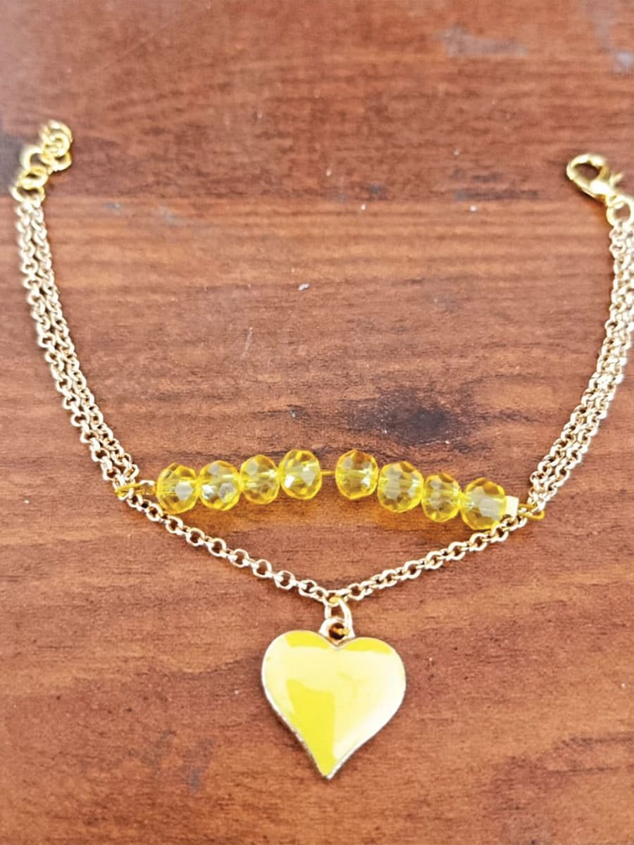 Elevate your style with this elegant women’s Gold double layered bracelet. Designed with sparkling Yellow crystal beads and a delicate Heart charm, it adds a feminine and trendy touch to any outfit. Perfect as a daily wear accessory or as a charming gift, this bracelet combines lightweight comfort with chic style.