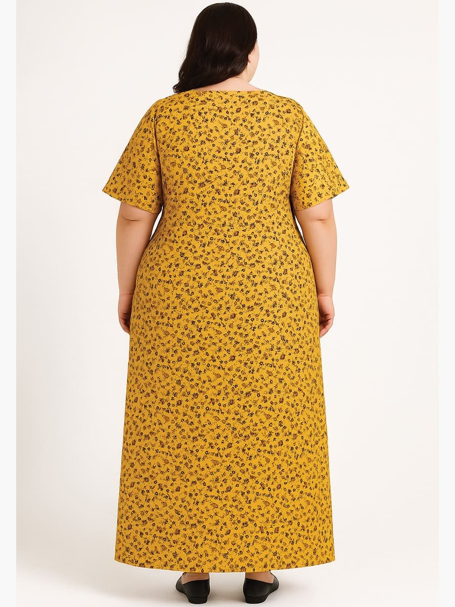 Experience all-day comfort with this Women’s Cotton Printed Nighty in Cream, crafted from soft and breathable cotton fabric. The patchwork-style print and elegant neckline piping give it a stylish yet homely look. Designed for plus-size women, this full-length cotton nighty ensures maximum comfort, easy movement, and a relaxed fit—perfect for daily home wear, lounging, and bedtime. Ideal for customers searching for cotton nighty, printed long nightwear, and plus-size sleepwear.