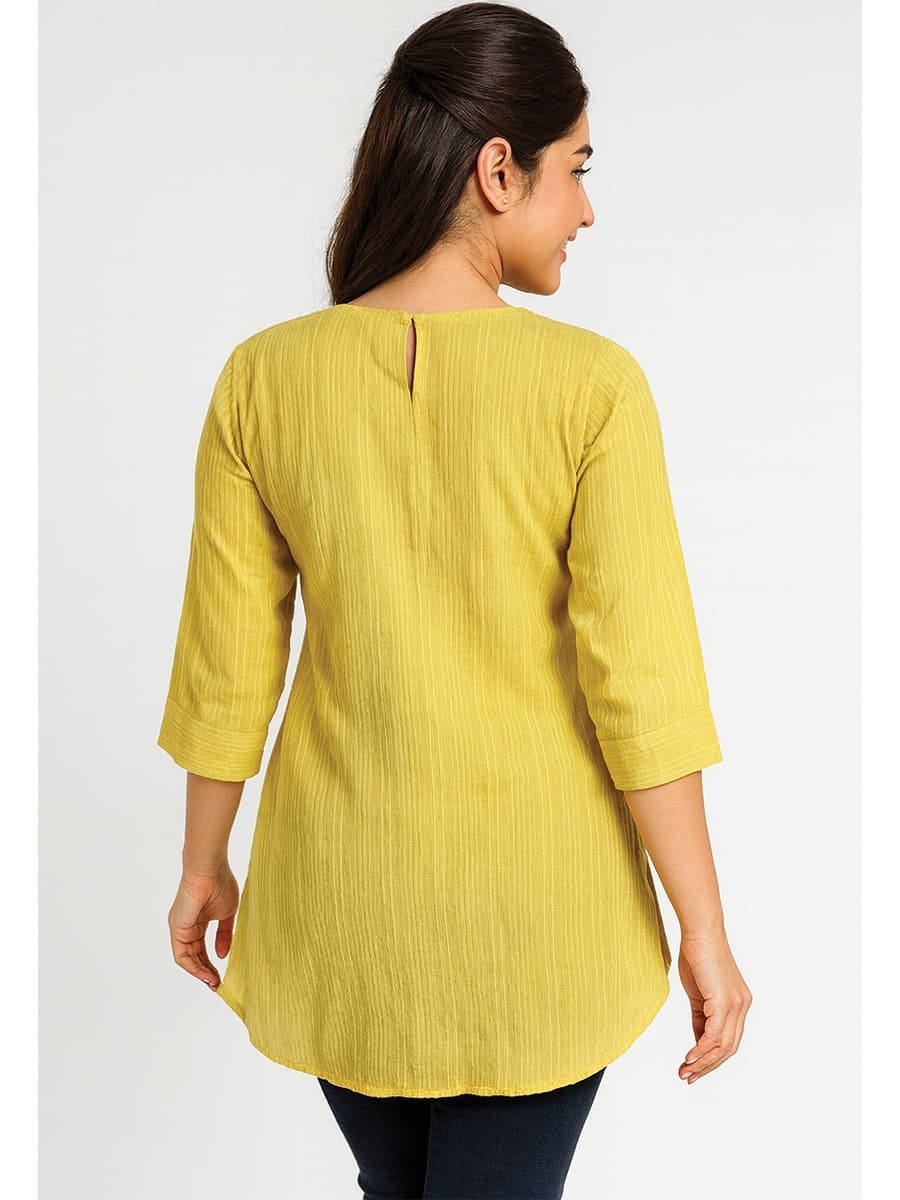 Popcorn Yellow top, women textured top, half sleeve Popcorn top, casual Popcorn blouse, women office wear top, breathable Popcorn top, stylish Yellow top