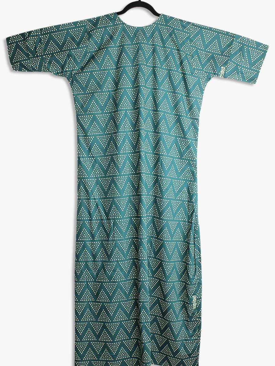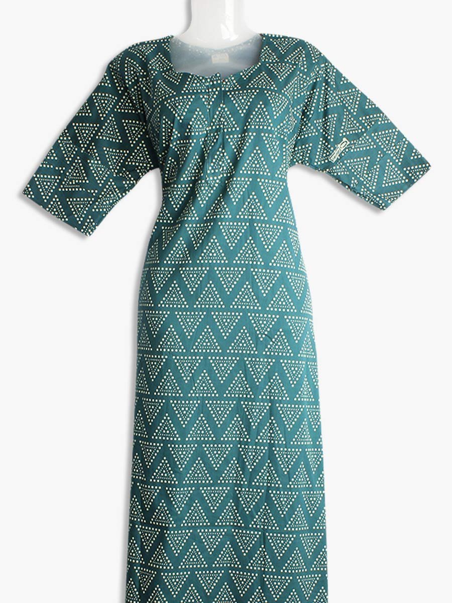 green cotton zipper nighty, 3/4 sleeve cotton nighty, women’s front zip cotton nightdress, breathable green nighty, ladies cotton house dress, cotton sleepwear for women, green cotton nightgown