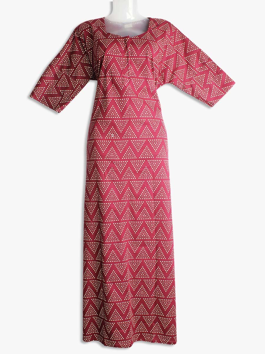 This elegant pink nighty for women features a front zipper for easy wear and 3/4 length sleeves that strike the right balance between coverage and breathability. Whether you’re winding down after a long day or lounging on a weekend morning, this cotton nightdress keeps you stylish and at ease.