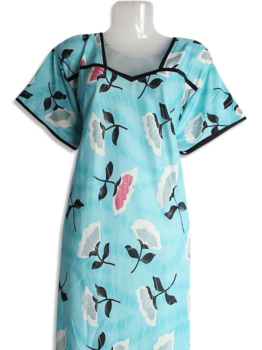 Experience ultimate comfort and elegance with this sky blue floral lycra nighty, designed for a soft, stretchable fit that moves with you. Made from premium lycra fabric, this nightdress is lightweight, breathable, and perfect for a restful sleep or lounging. The boat neck design adds a stylish touch, while the delicate floral print enhances its feminine charm. A must-have for your nightwear collection, this nighty offers both style and comfort.