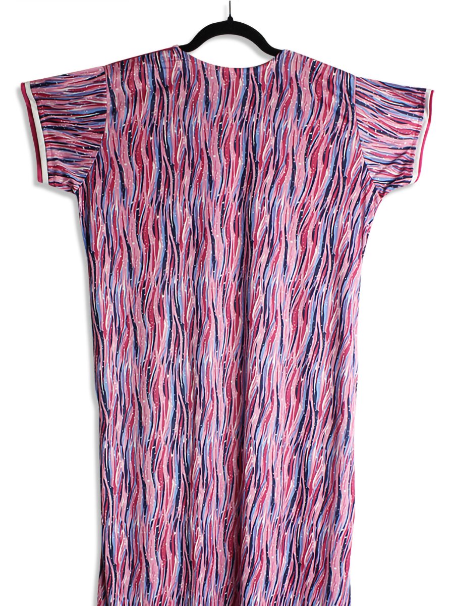 Lycra nighty, pink nightdress, shrug-style nightwear, boat neck nightgown, flowy fit sleepwear, stylish nightdress, women’s nightwear.