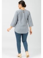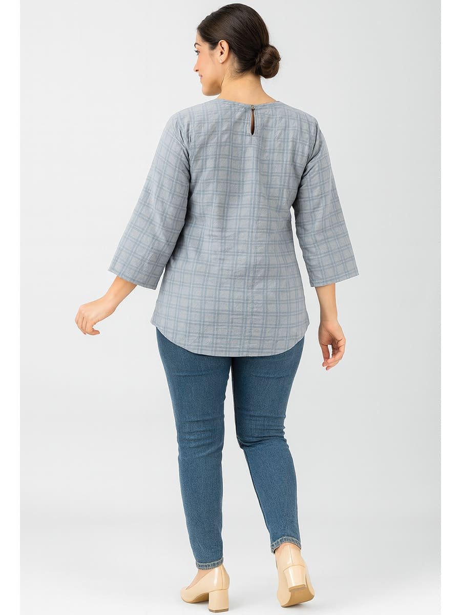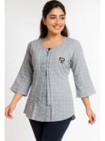 popcorn grey top, women textured top, half sleeve cotton top, casual cotton blouse, women office wear top, breathable cotton top, stylish grey top